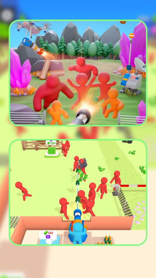 1、点击屏幕滑动控制角色移动,走出基地外即可拯救队友,自动射击敌人。