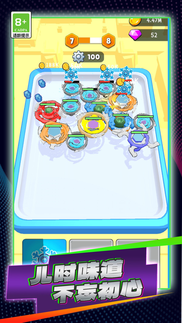 2、游戏提供数十种陀螺部件,如攻击环、动力核心、平衡底座等,可自由组合调整陀螺属性;
