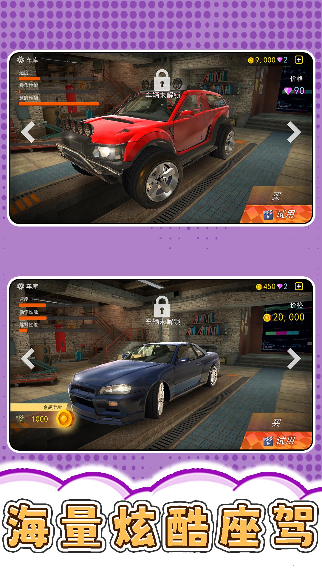 4、掌握不同的驾驶技巧,参与新的赛事活动,挑战更多趣味的竞速活动。