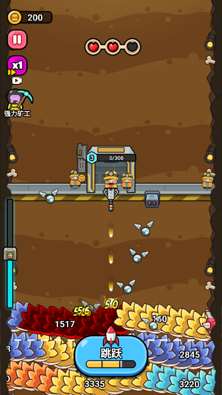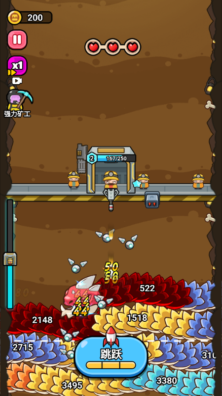 2. 通过击败从地底裂缝钻出的怪物获取经验值,随机解锁三种不同方向的强化效果。