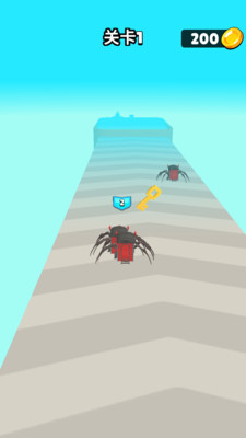1、通过滑动屏幕控制你的蜘蛛英雄在错综复杂的路径上跑酷前进,躲避障碍并收集路上的蜘蛛卵和资源。