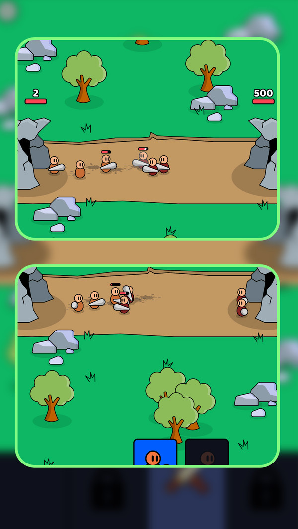 2、不断的招募士兵来抵御敌人的进攻,击破敌人的堡垒即可获得关卡胜利。
