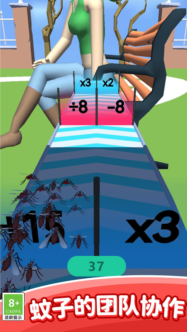 1、赛道中设置不同倍数的增殖门,正确选择高倍数门可实现蚊子数量几何级增长,但高倍数门往往位于危险路径。