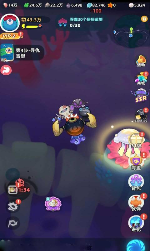 3、每一步探索都充满惊喜与危险。吞噬是你在深海中生存和成长的核心手段;