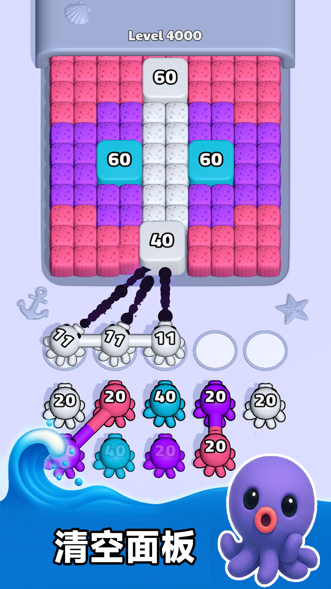 2、章鱼喷射墨汁的创新玩法为消除类游戏带来了全新操作维度。