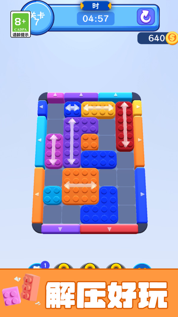 拆卸大作战是一款移动方块进行消除的趣味游戏,玩家需滑动屏幕移动方块,将相同颜色的方块排列成水平横线,触发消除效果,消除后的方块会转化为破坏能量,对场景中的建筑或障碍物造成粉碎性打击,如拆除墙壁等,游戏采用逼真的物理引擎,方块消除时产生的冲击力会动态影响周围环境,达成不同成就。