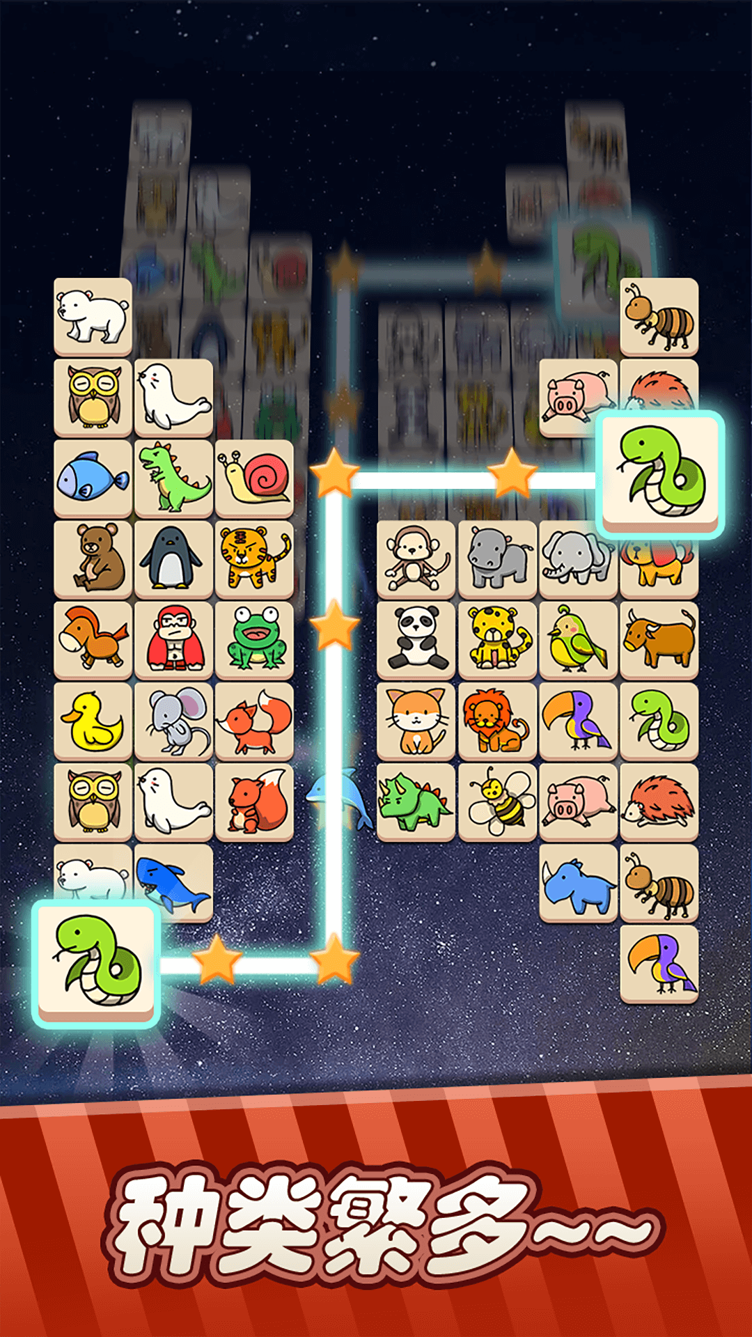 1、通过手指滑动连接两个相同宠物图案,连接线最多转折两次即可消除。