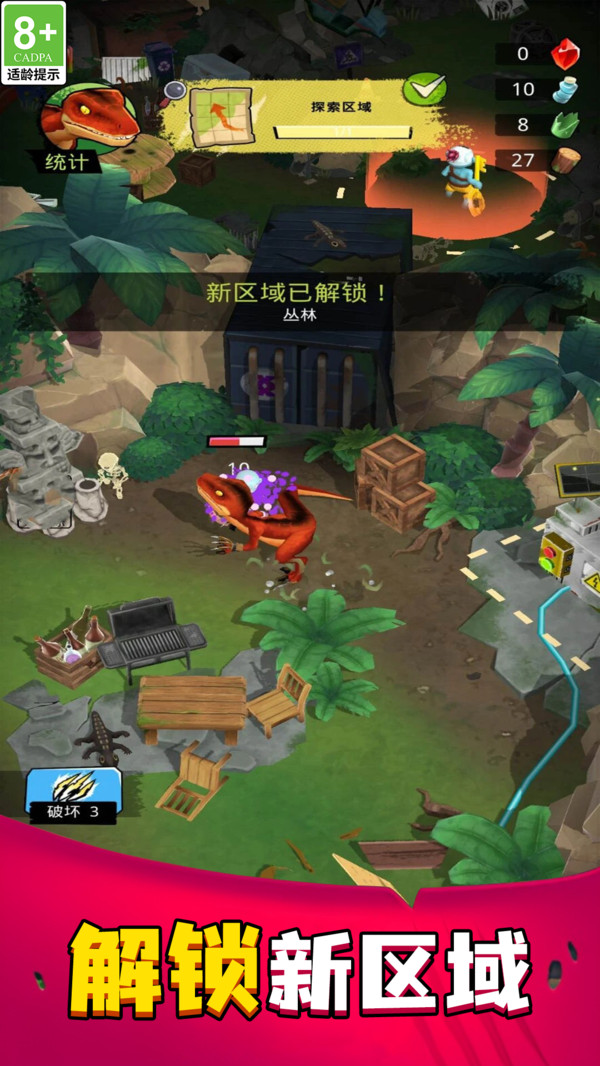 4、不断的完成任务,提升自己的等级,让恐龙积极的成长变强。