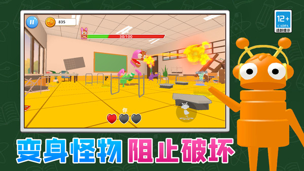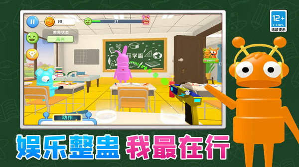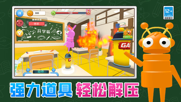 2、在教师中,根据左侧的动作来选择物品,对老师发起整蛊攻击玩法。