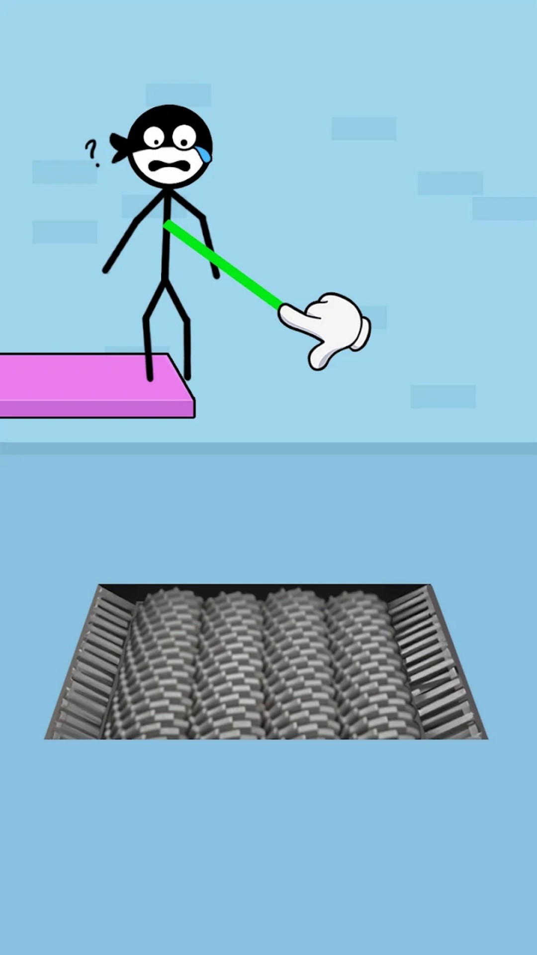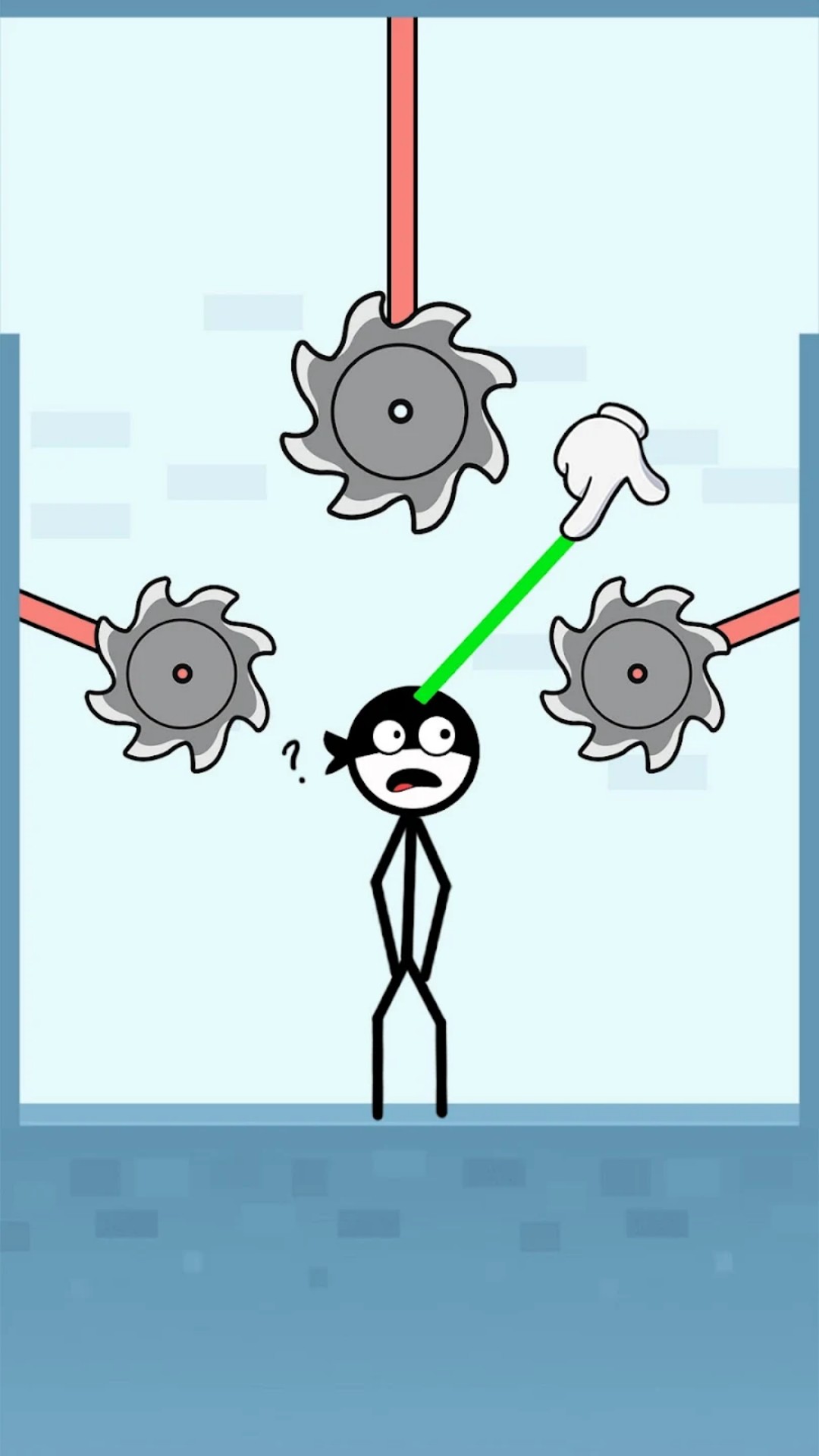 1、通过虚拟摇杆和按键控制火柴人移动,割掉绳子让你的火柴人迅速下落。