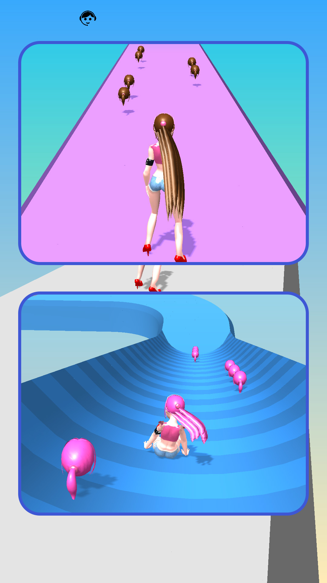 1、进入游戏,点击控制游戏中的女生开始跑酷,沿路收集头发,主角头发变得更长。