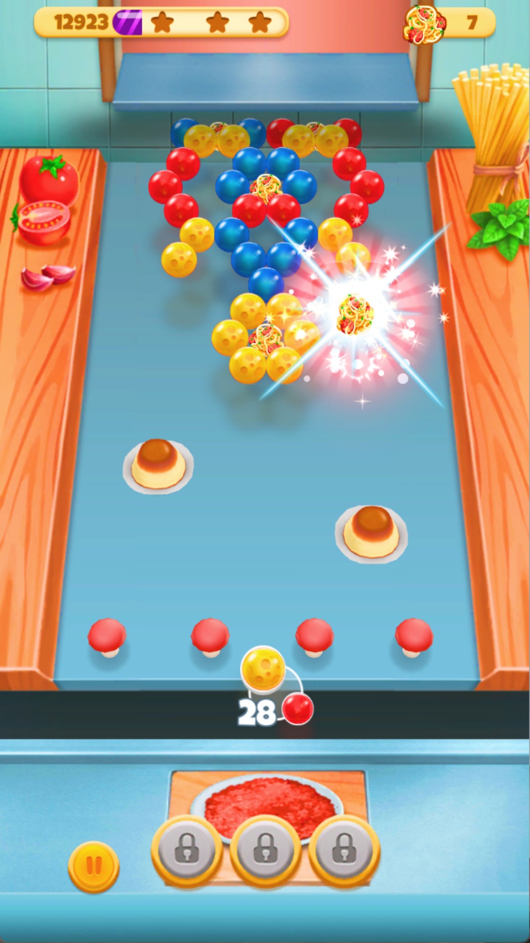 1、泡泡碰撞后,若颜色匹配且数量足够,通常需3个或以上相连,则会消除并得分;