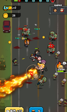 2、点击屏幕释放小胖的旋风腿和铁头功技能,在危急时刻清理突破防线的尸群。