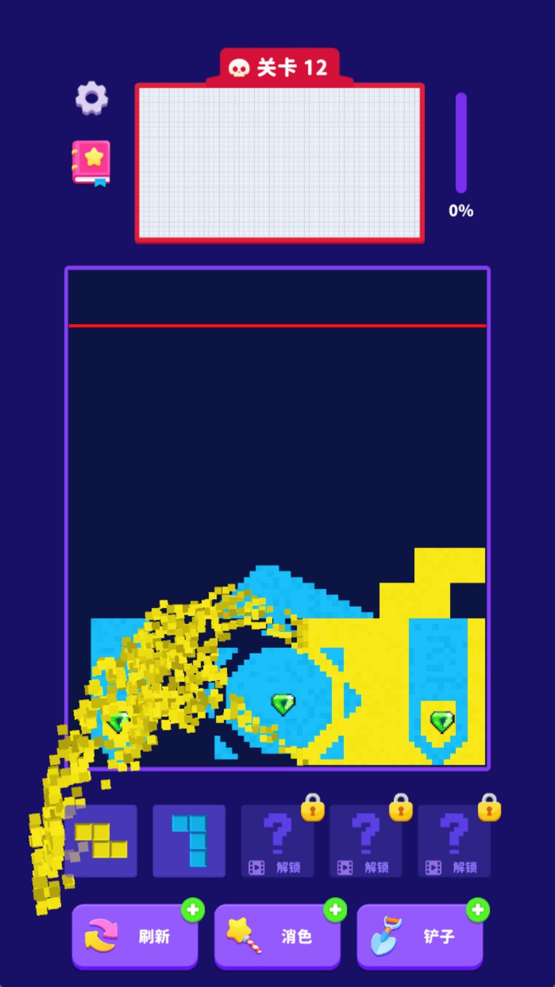 2、流沙块会持续向下滑动,玩家需快速决策砖块放置位置以阻止堆积。
