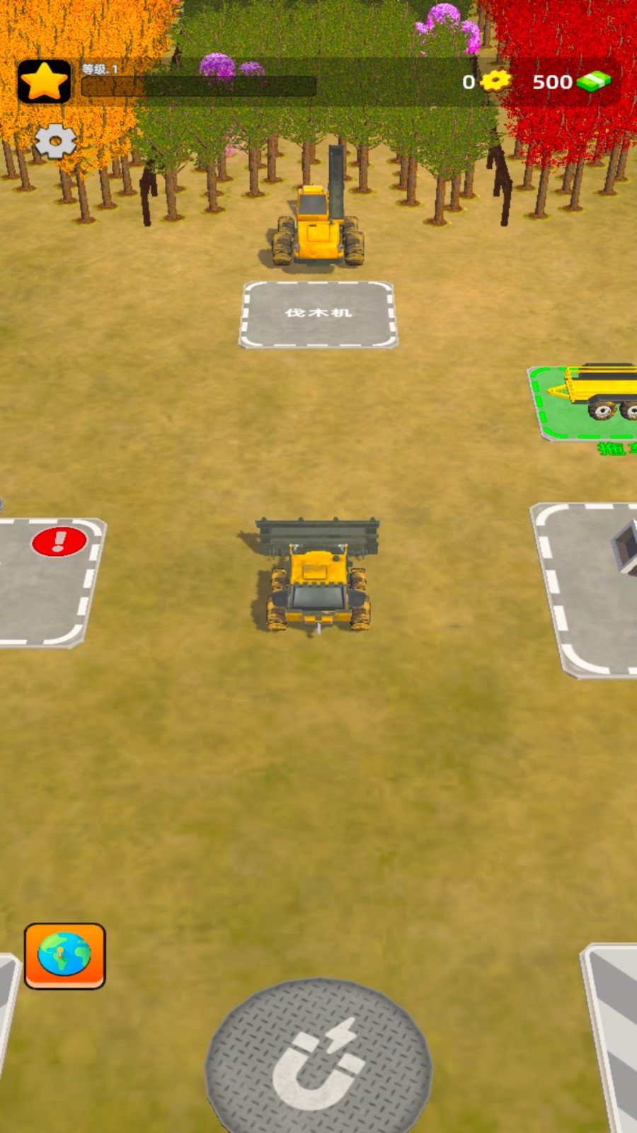 1、进入游戏需要学会各种机械的操作方式,控制车辆进行伐木。