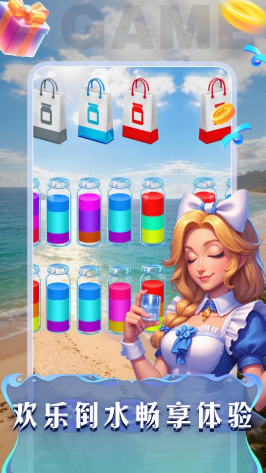 倒水瓶不能停是一款趣味休闲的闯关游戏,各种各样不同的瓶子,里面是装满了不同颜色的水,玩家要做的事情,就是把相同颜色的水放置在一起,这样就能顺利消除,制作出一杯杯可口的奶茶了,整体的玩法上特别简单,不过很多时候,需要仔细观察,这样才能更好的去完成,思考每一步的顺序,合理安排,这样才更加容易取得胜利,快来一起挑战吧!