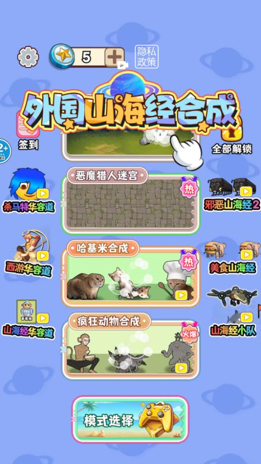 疯狂动物吞噬是一款趣味生存类型的游戏,以山海经为主题,包含了各种各样不同的异兽,不过在刚刚开局的时候,你就是很弱小的存在,需要吞噬那些比你更弱小的,这样才能慢慢进化,变得更加强大起来,随着经验值的获取,可以不断进化,不管的形态,还是自身的属性,会带来很彻底的变化,不过要小心那些强大的生物,注意躲避,想办法更好的生存下去吧!