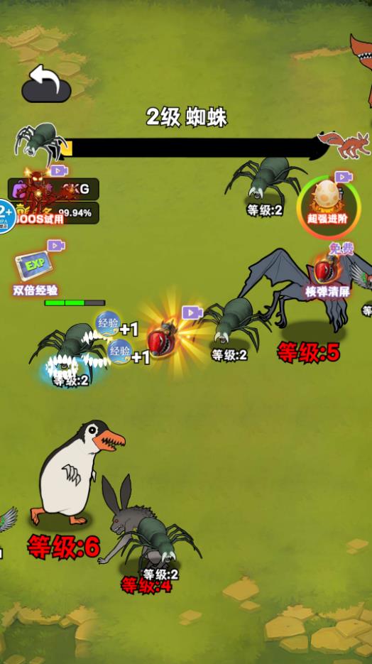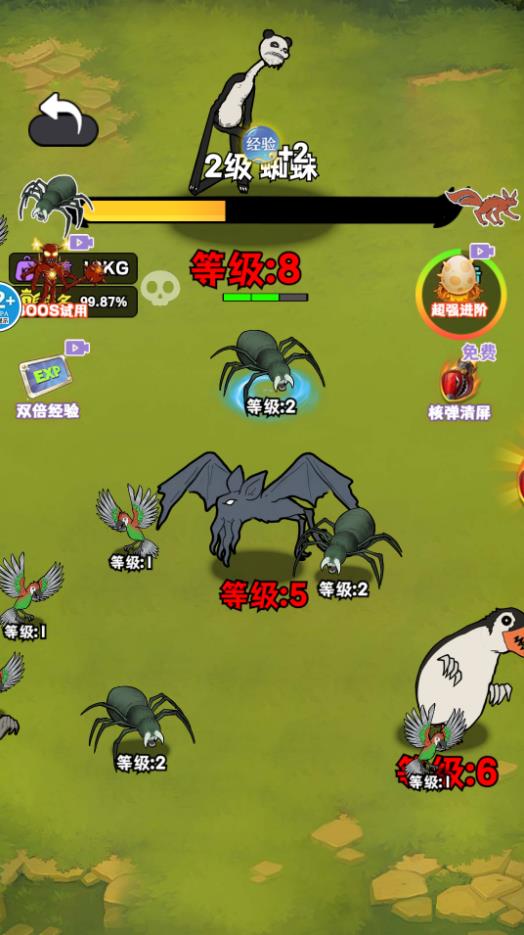 3、经验值满了以后,到了2级就可以进化成蜘蛛,你可以吞噬同等级的。