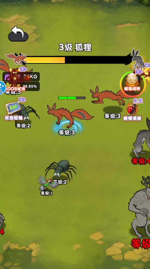 2、地图上遍布其他小动物,疯狂吃吃吃,看着你的体型飞速增长,体验从量变到质变的快感。