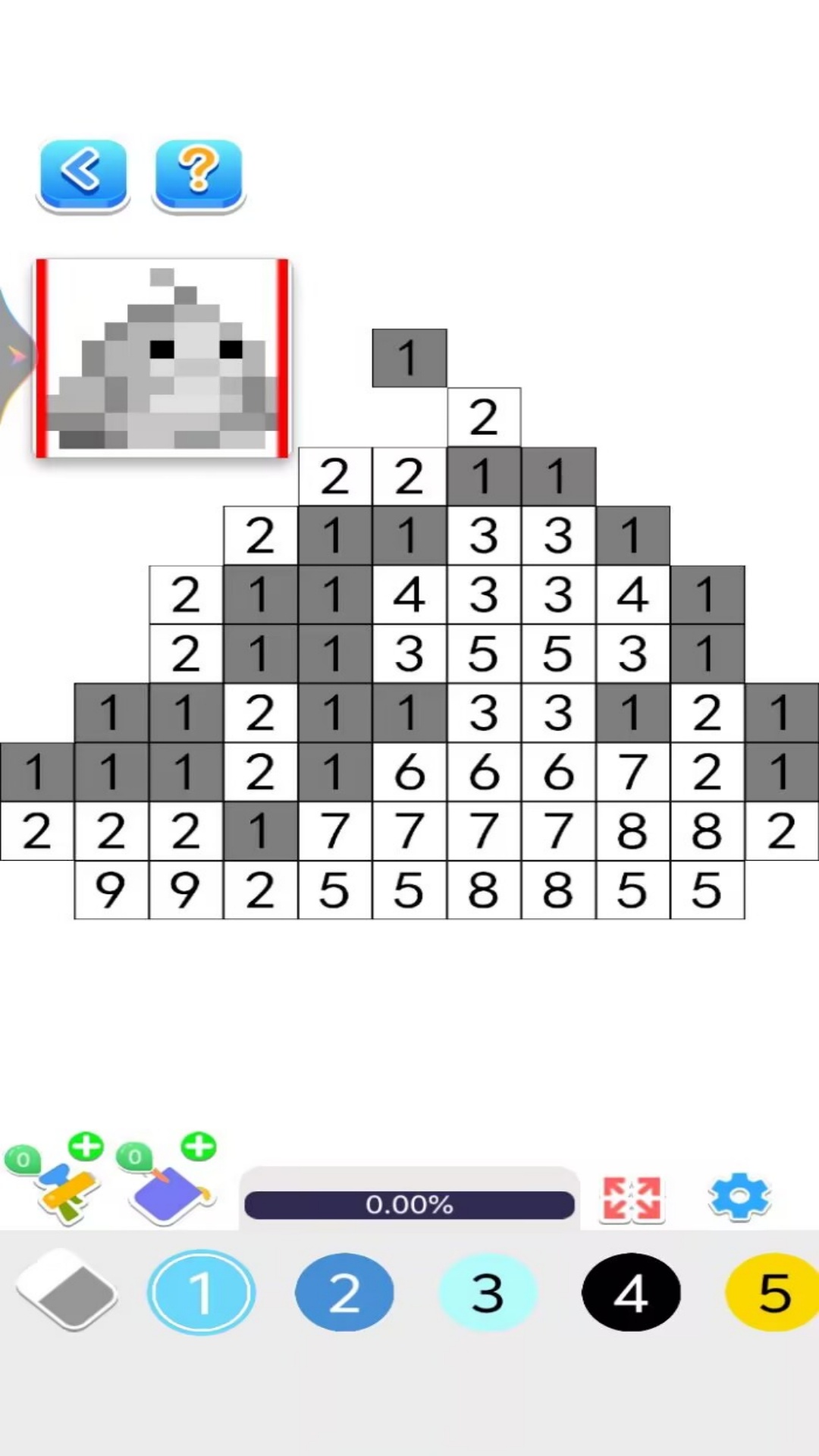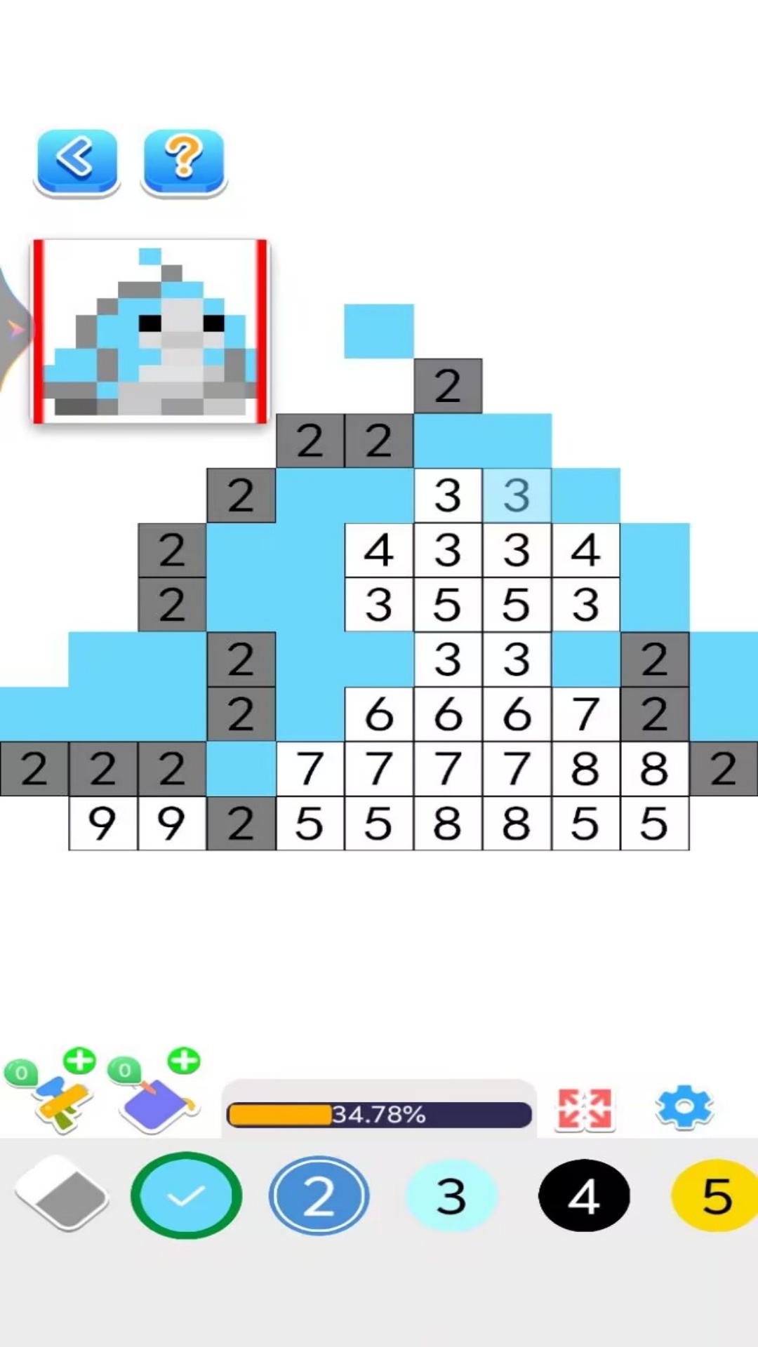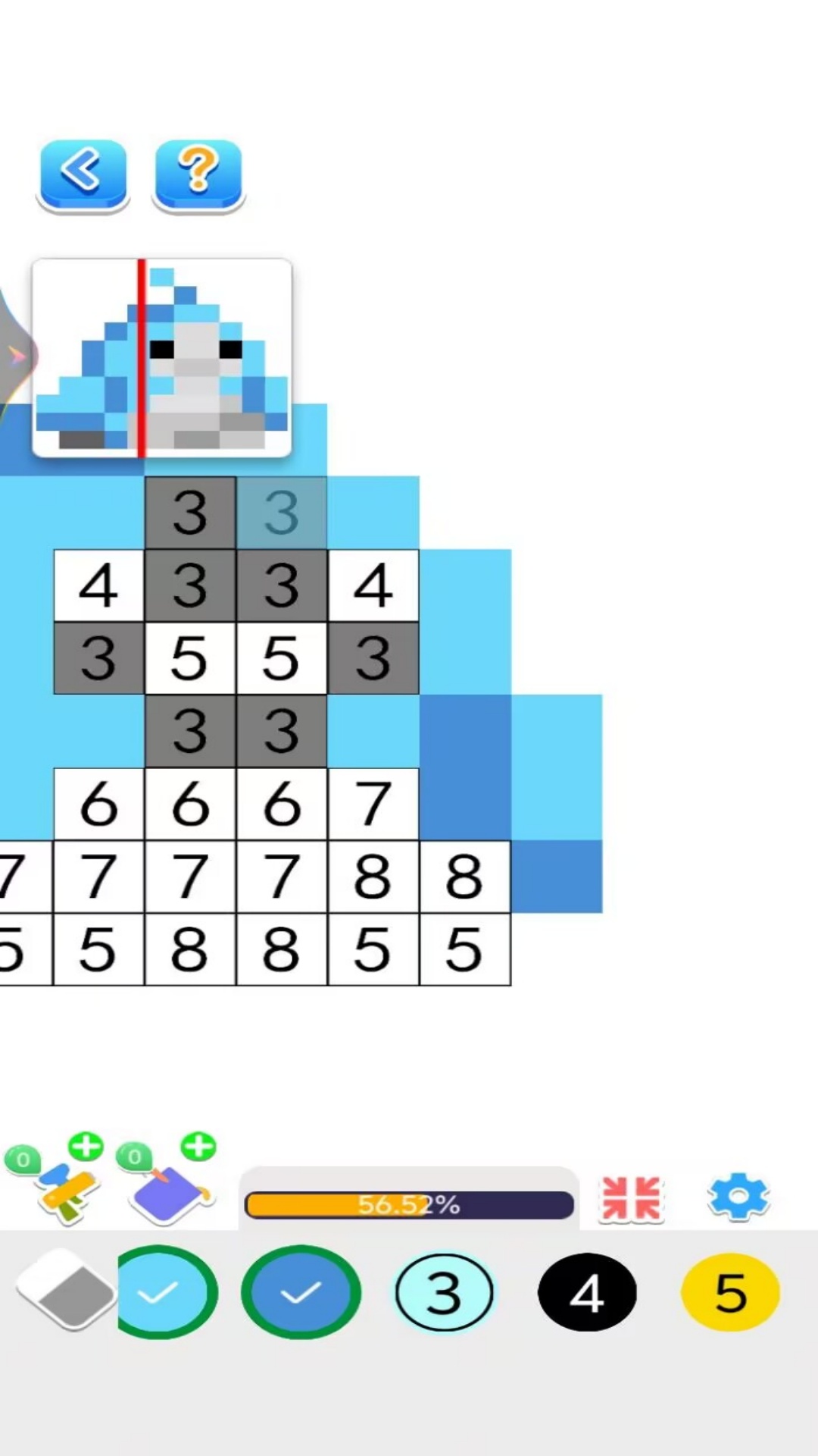 2、根据数字选择色块,完成虚拟填色,如数字“1”代表红色,数字“2”代表蓝色,依次填充即可;