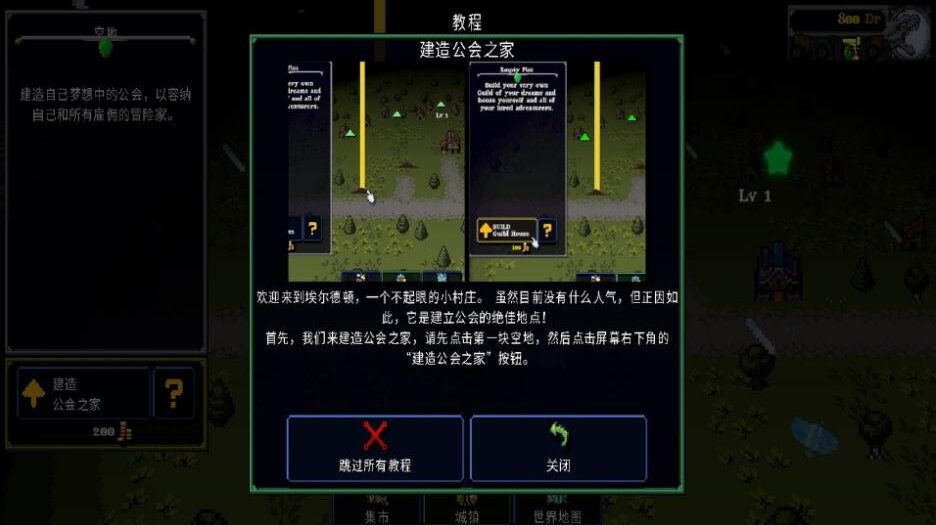 3、左上角会有任务提升,需要建造自己梦想中的工会,选择空地点击就好