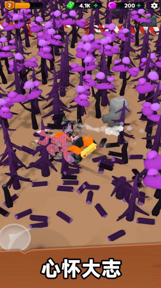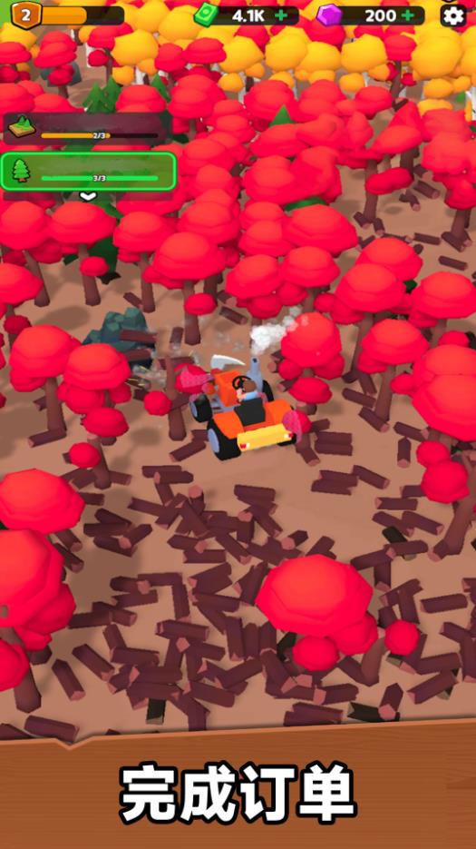 1、驾驶你的车辆,在森林到处切割,在地上的话,会有很多木头出现。