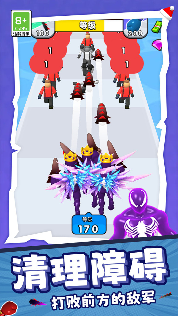 3、在关卡终点,角色会自动攻击前方的障碍,获得金钱奖励,看你能走多远。