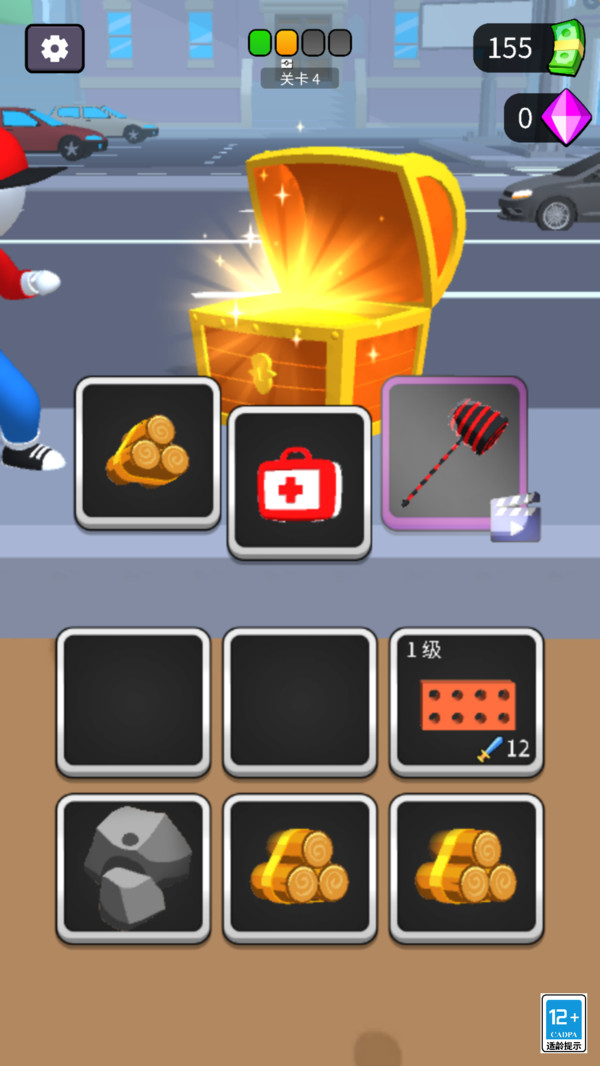 2、每个关卡给出的物品不同,通过滑动合并物体,来获得你的进攻武器。