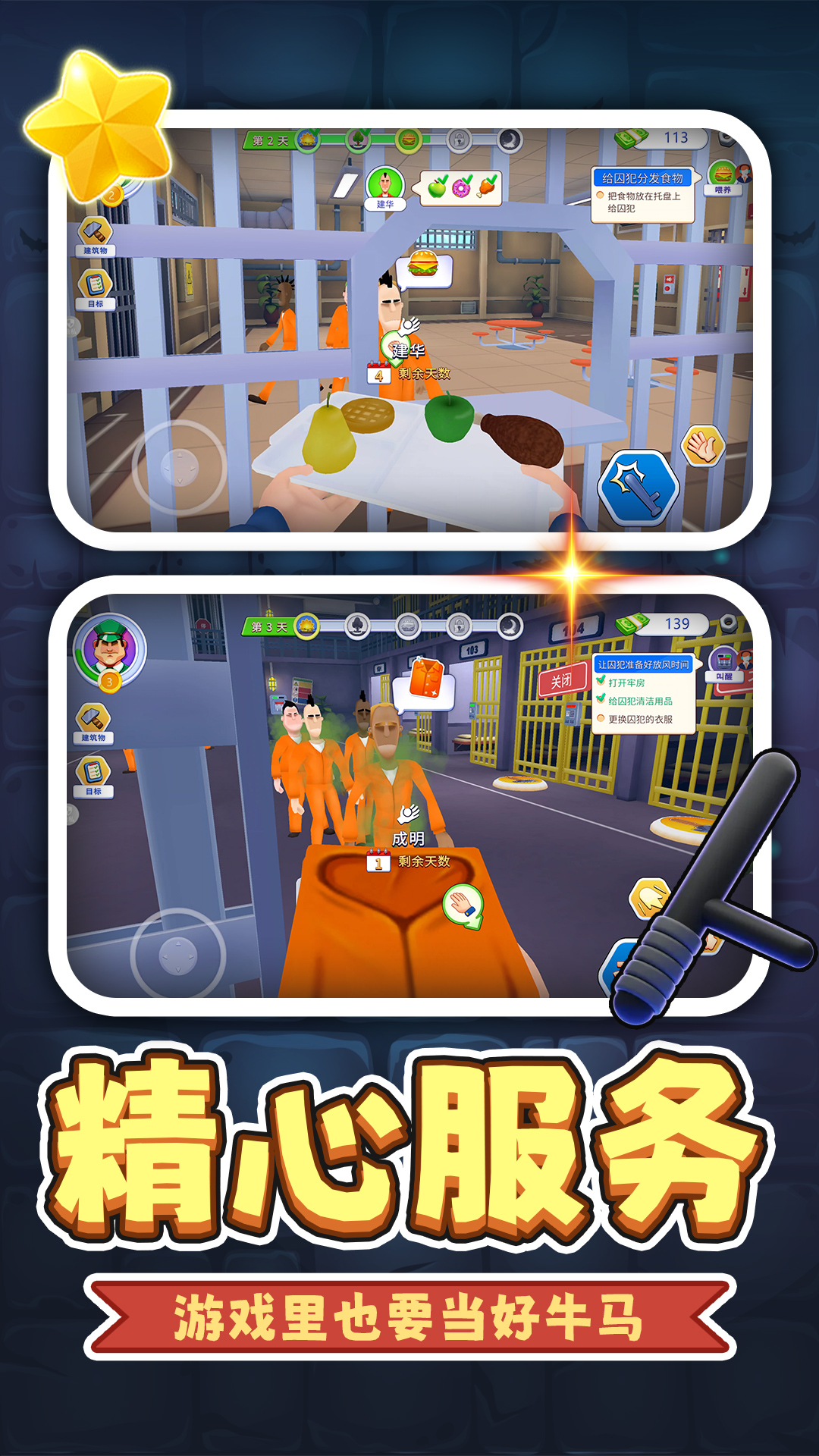 3、不断的完成任务,来获得更多奖励,扩建监狱,接纳更多的犯人。