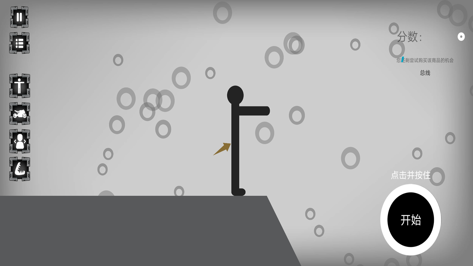 1、进入游戏,火柴人将置于高出,点击按键寻找合适的坠落方式,一键即可坠落。