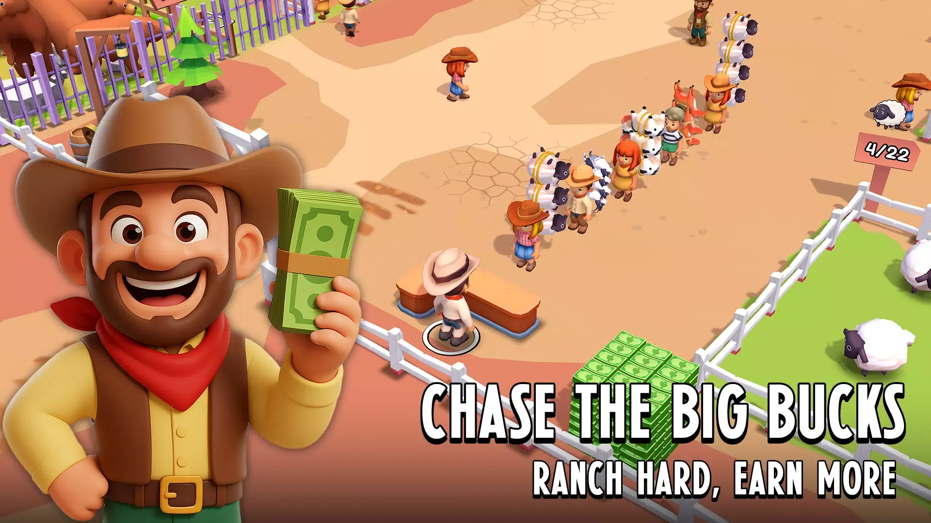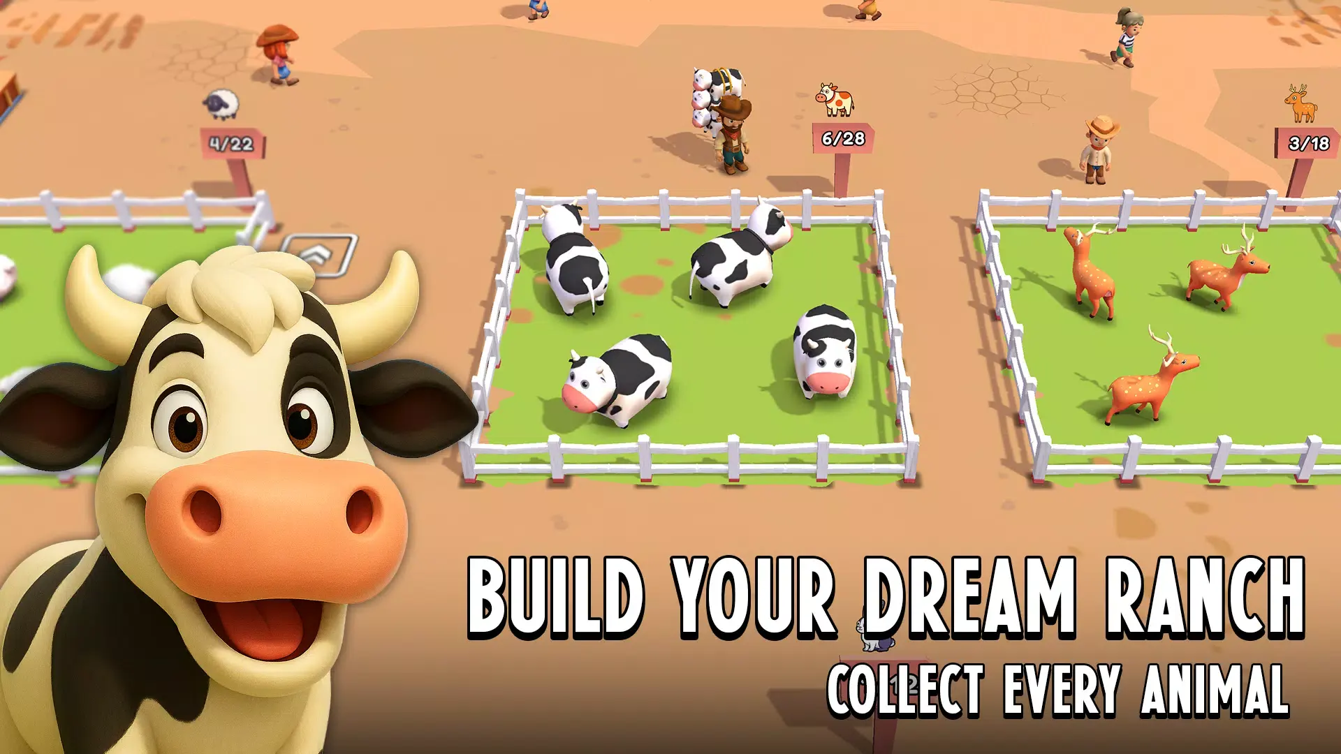 牛仔套索大师是一款融合了西部冒险与放置经营的趣味游戏。你将化身一名勇敢的牛仔,驰骋在广阔的荒野之上,使用标志性的套索捕捉四处奔跑的鸡、牛、山羊等动物。游戏巧妙地将快节奏的街机式抓捕玩法与轻松休闲的放置成长系统相结合。除了亲自动手抓捕的乐趣,你还可以将捕获的动物运往市场交易,或建立自己的动物园吸引游客,赚取稳定的被动收入。通过赚取的金币,你可以升级套索、解锁更广阔的生物群落,并发现更多奇特动物。从一名新手牛仔开始,逐步打造你的牧场与动物园帝国,书写属于你的西部传奇。