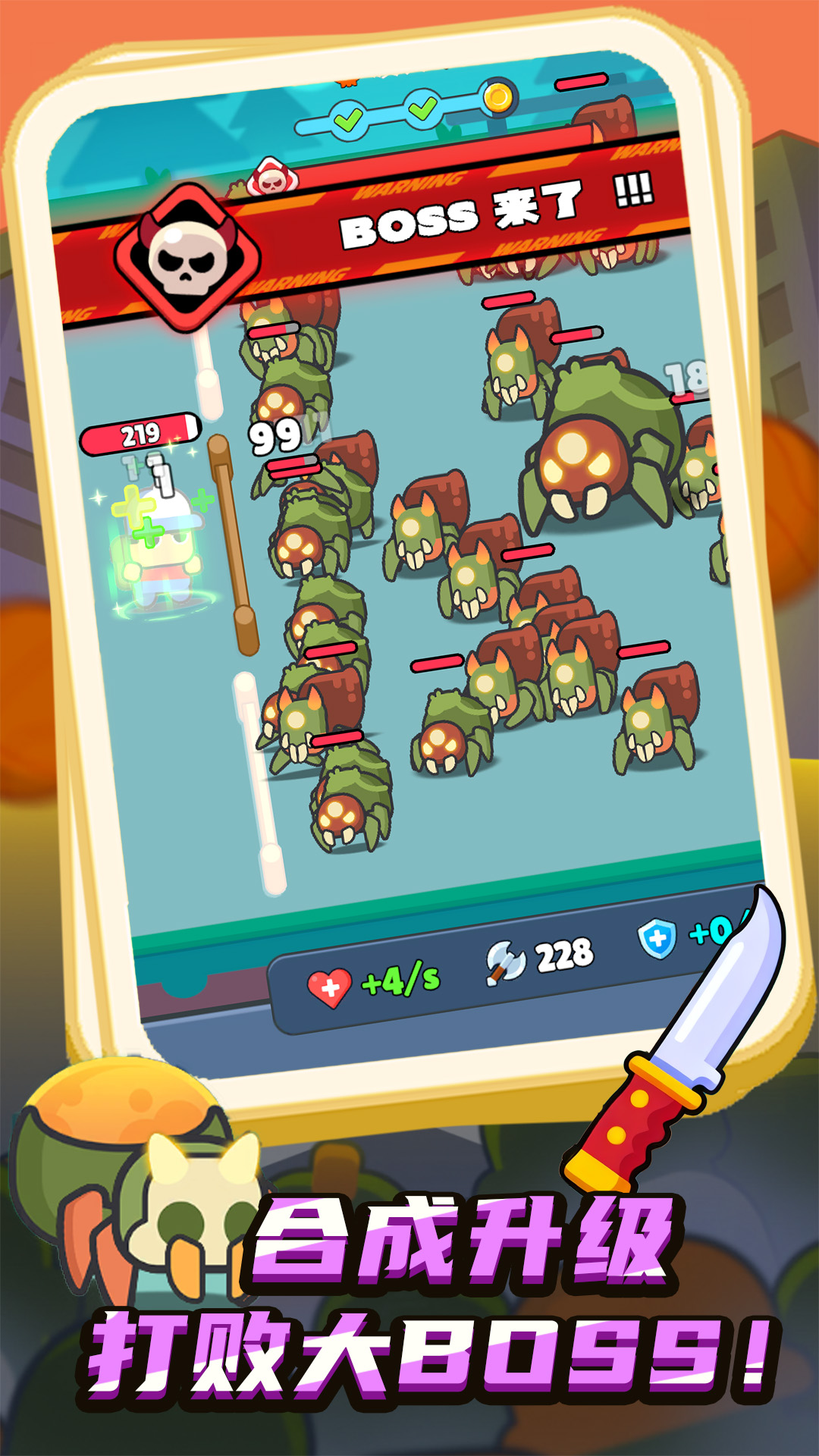 1、每一章都是一次新的生存挑战,关底的强大Boss战更是对你合成策略与即时攻击操作的终极考验;