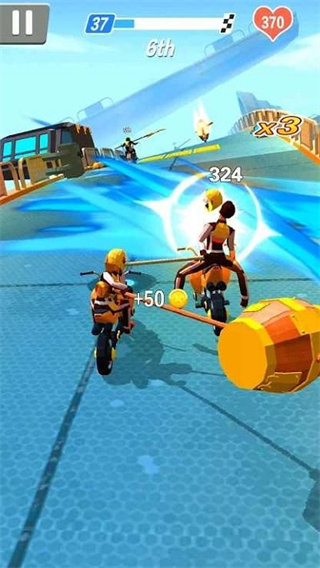 3、使用随身携带的棍棒等武器,在并驾齐驱时挥动攻击,击落对手以扫清道路。