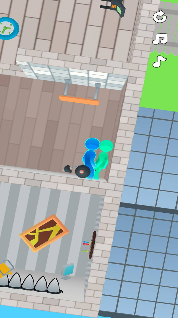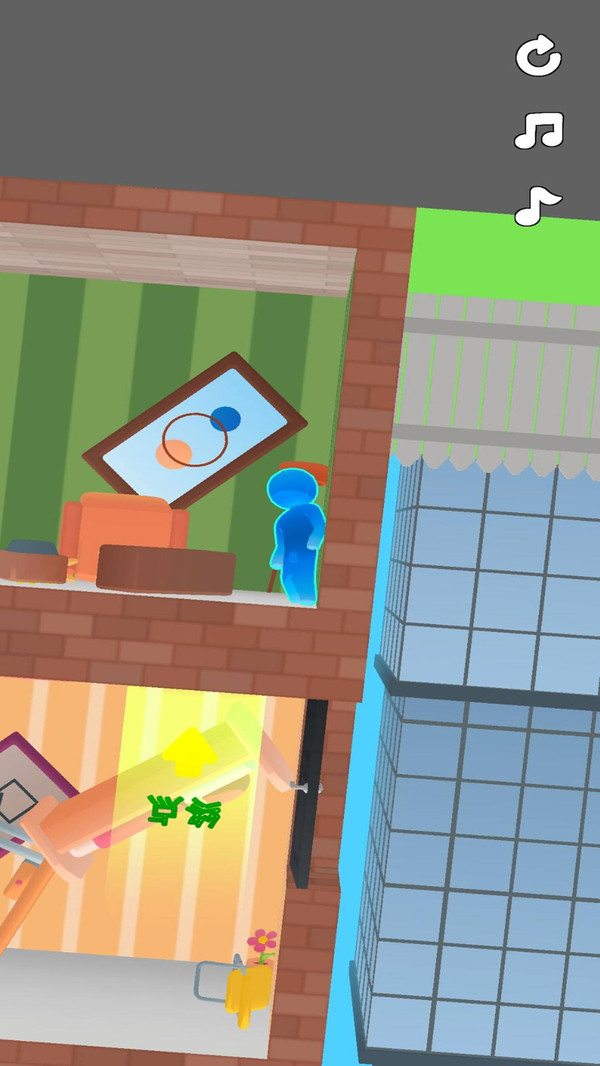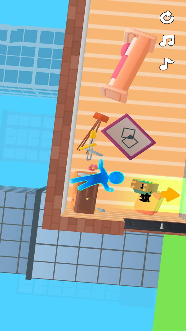 3、根据游戏环境调整好房间的角度,寻找突破口,快速的移动成功的掉落。