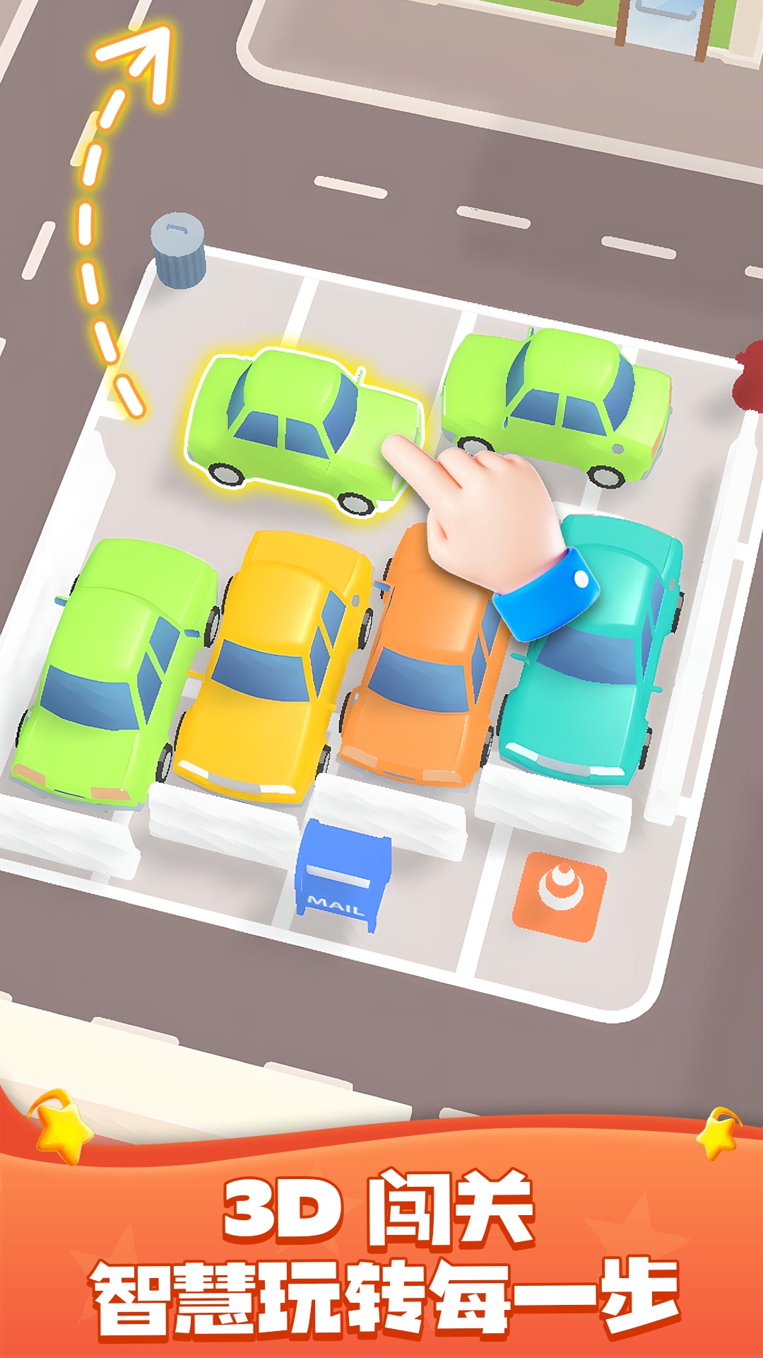 1、成功通关时,车辆顺畅驶出、关卡完美化解的动画,带来极大的视觉舒适感和成就感;