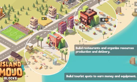 2、采集木材、矿石等资源方块,用于合成更高级的建筑设施,如海景餐厅、度假别墅,吸引游客来访。