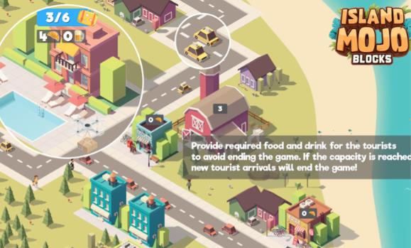 3、通过满足游客需求获取收益,再用收益解锁新的装饰与功能方块,持续扩建岛屿。