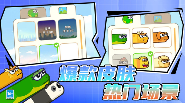 4、更有多样小蛇的皮肤解锁使用,通过挑战关卡获得观看视频获取。