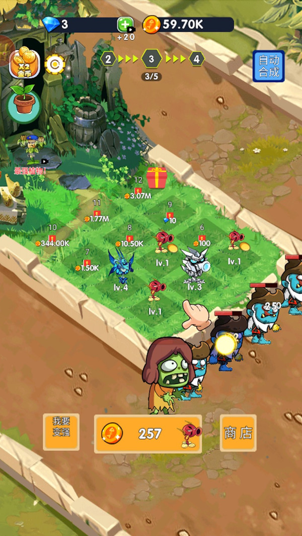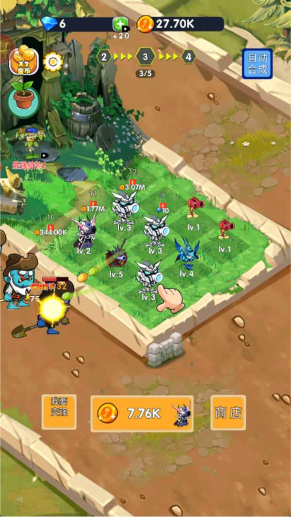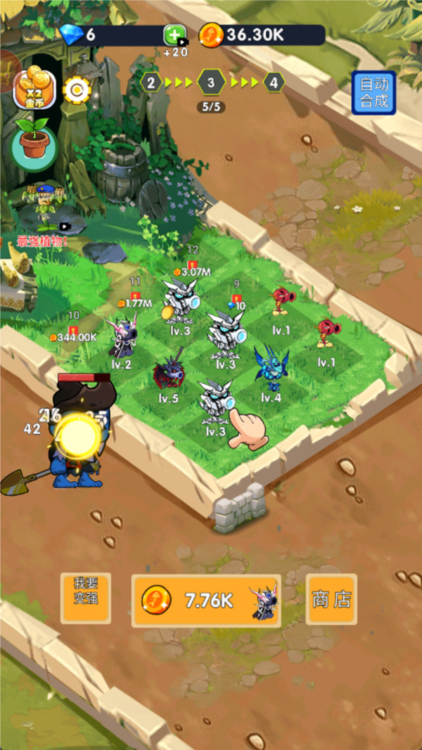3、通过不断合成解锁植物图鉴,玩家可以直接从商店购买想要等级的植物部署。