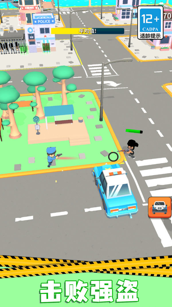 1、点击屏幕滑动控制警察移动,在城市中找到罪犯,将他们制止并抓住。