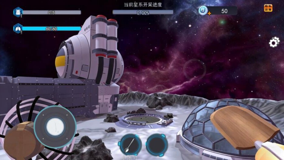 4、在宇宙找到合适的位置挖掘,有很大的概率可以获得矿石,不过要注意氧气消耗。