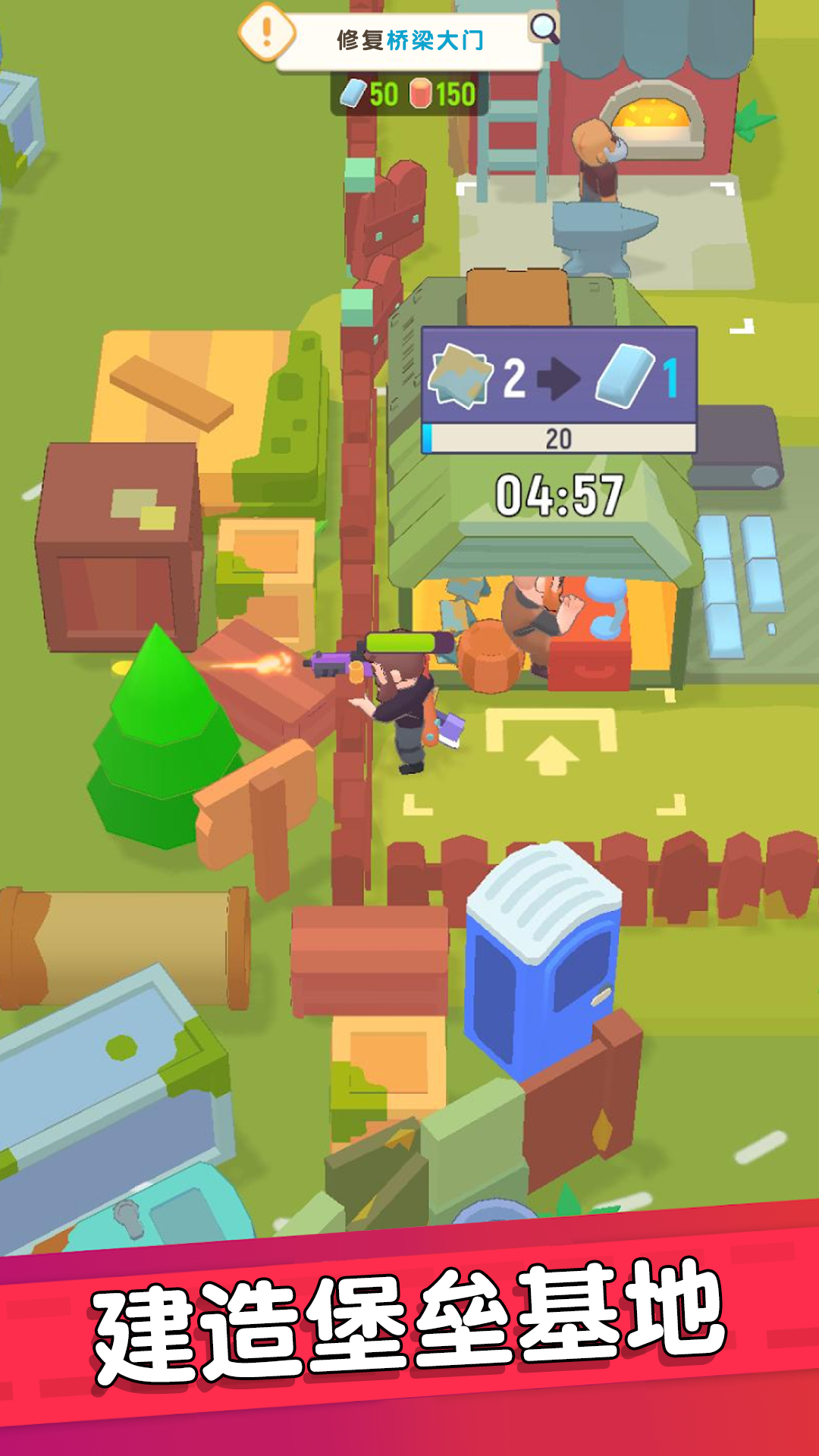 3、利用资源建造你的基地,修复围栏抵御僵尸进攻。