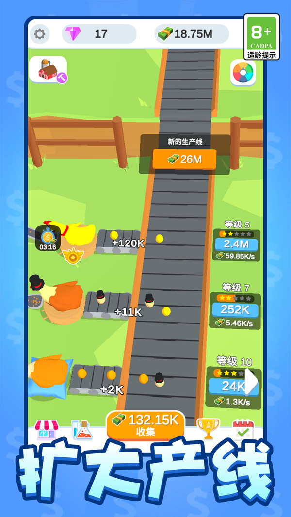 3、建造新的生产线,积极的开始为您赚取财富;