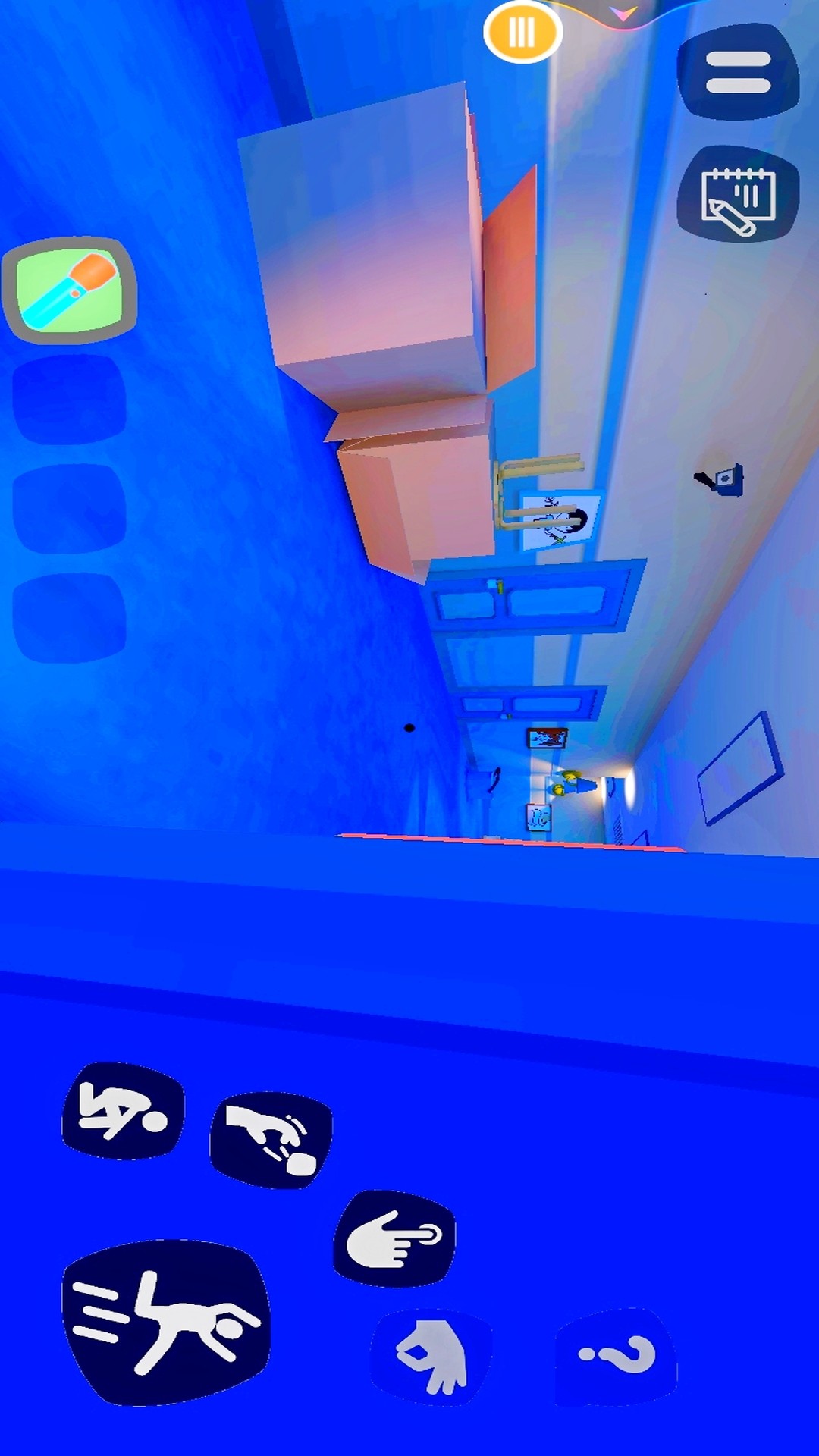 3、点击捡取手电筒,需要你找寻电池,在房间里自由的穿梭,寻找隐藏的电池。