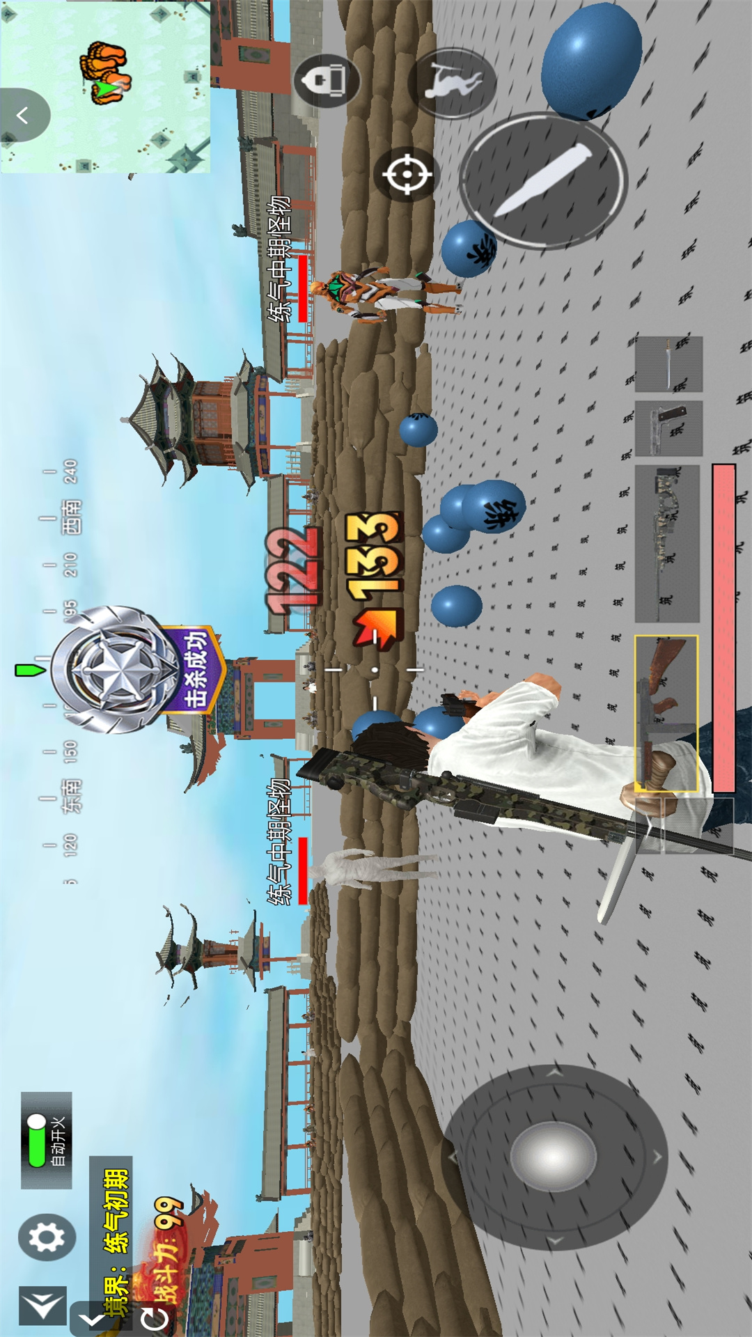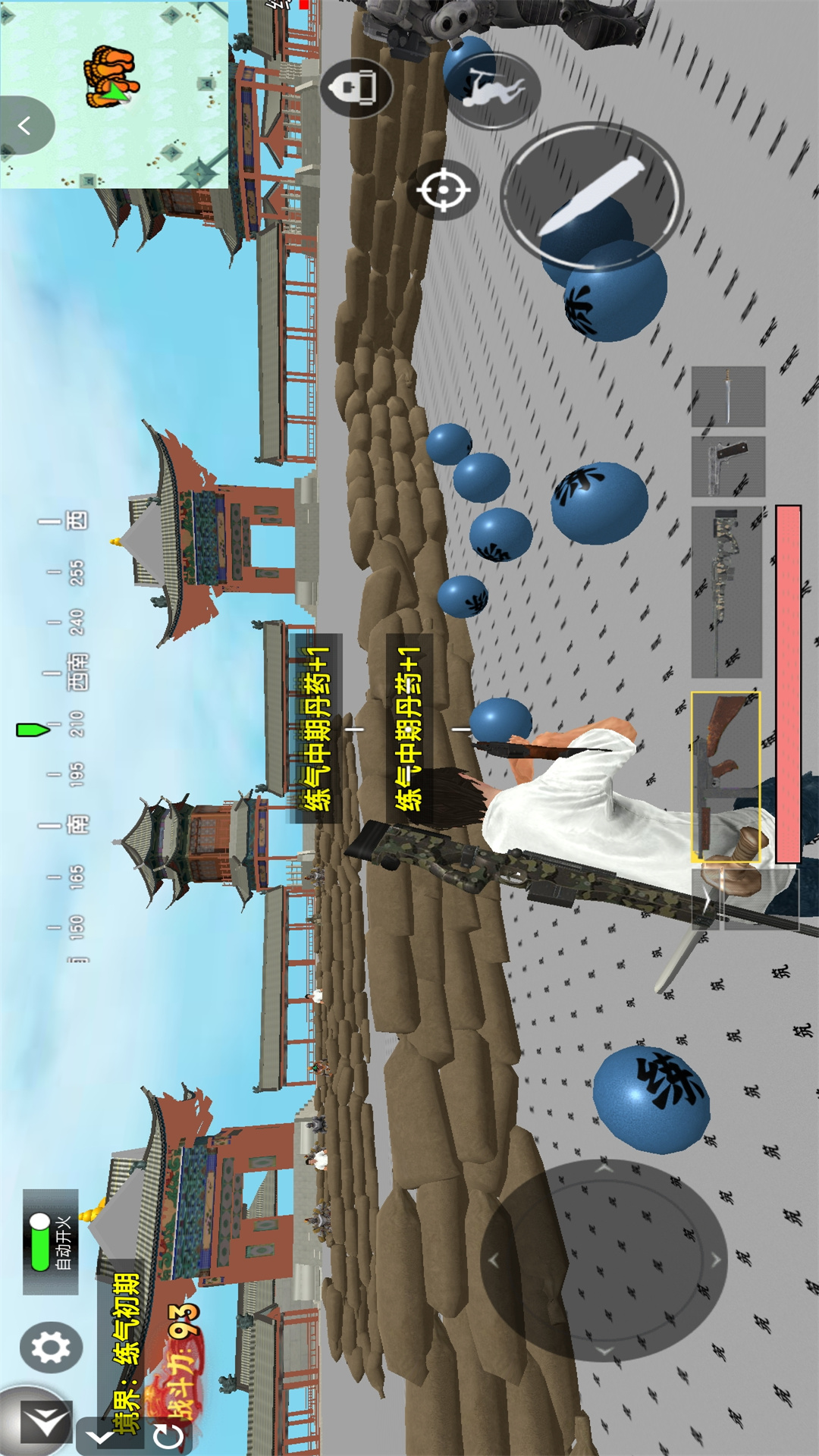 2、拿起武器开始移动,精准的射击敌人,获取大量的丹药,不断的提升角色的战斗力。