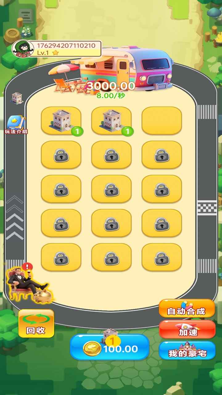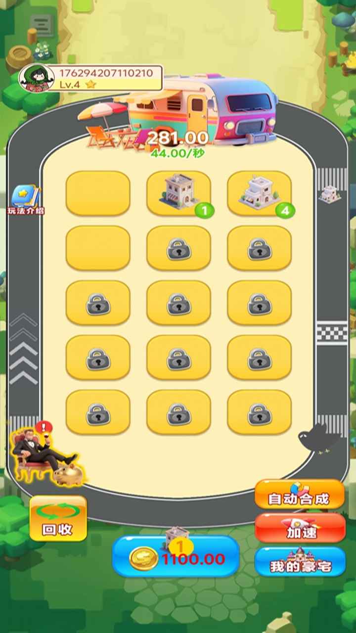 2、不断的收集豪宅获取金币,点击购买豪宅,合成升级房子等级,继续的升级。