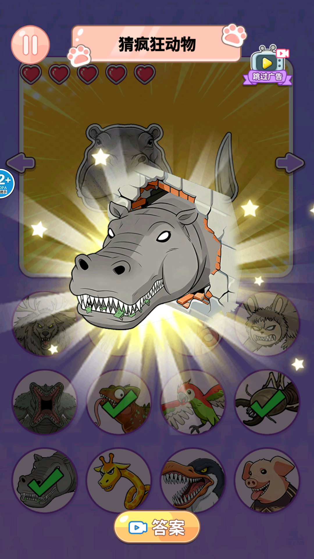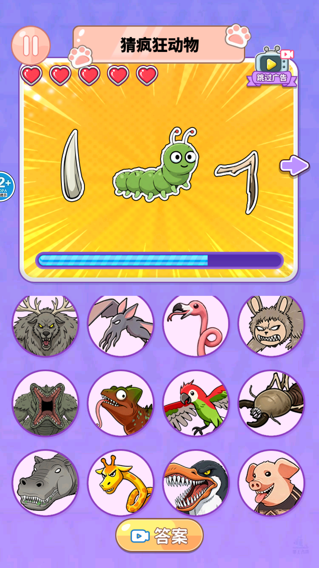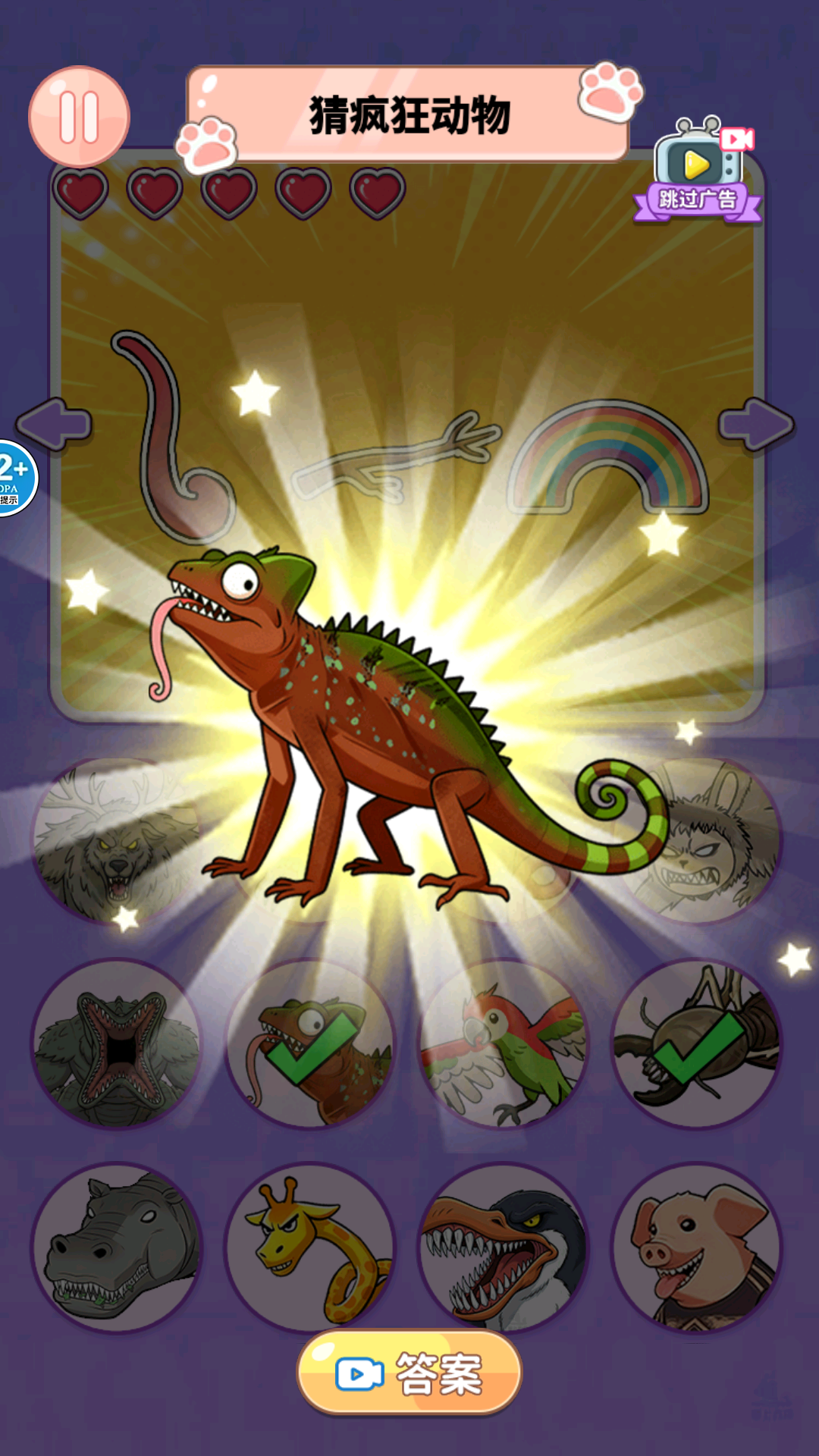 2、每一关你会看到一张经过精心裁剪的动物身体部位特写图片,线索可能来自皮肤纹理、爪子形状或独特花纹。