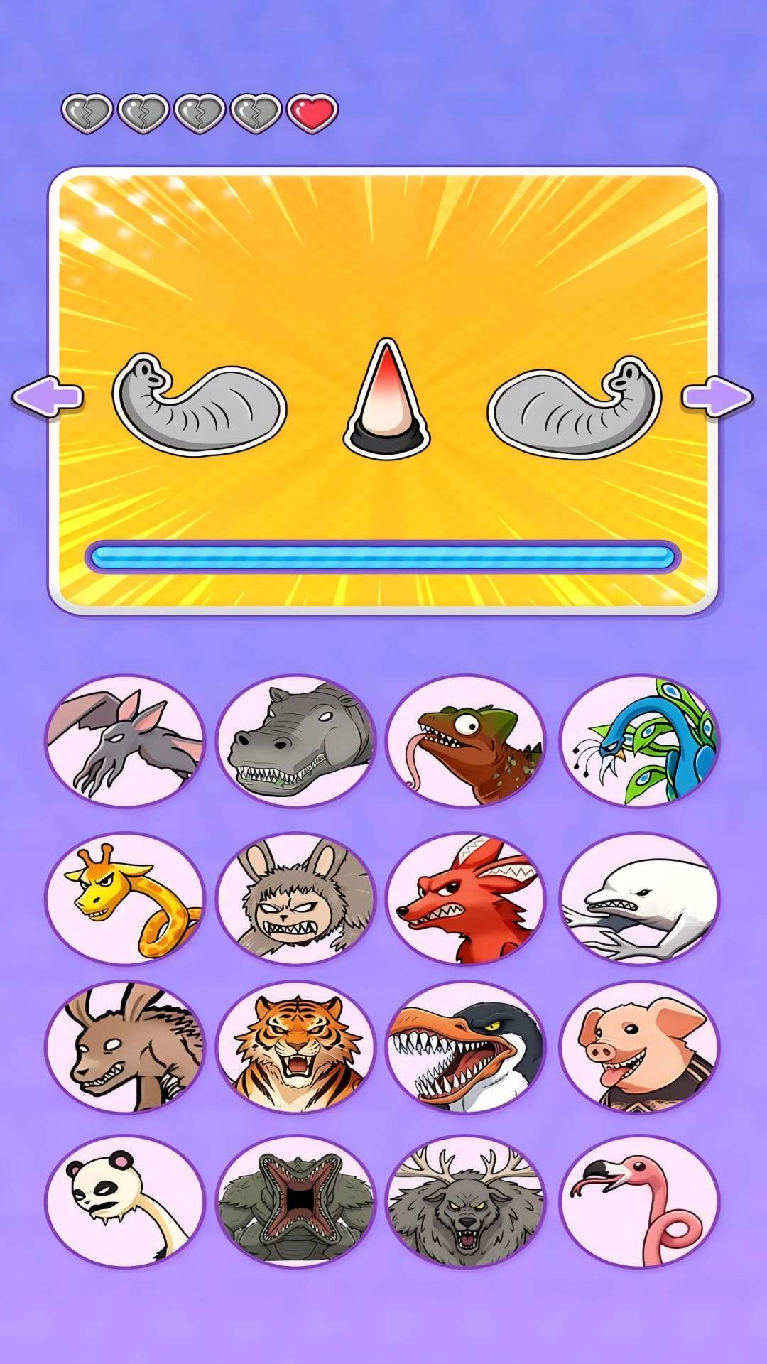 1、进入游戏,你可以看到诸多不同的游戏关卡,选择猜疯狂动物。