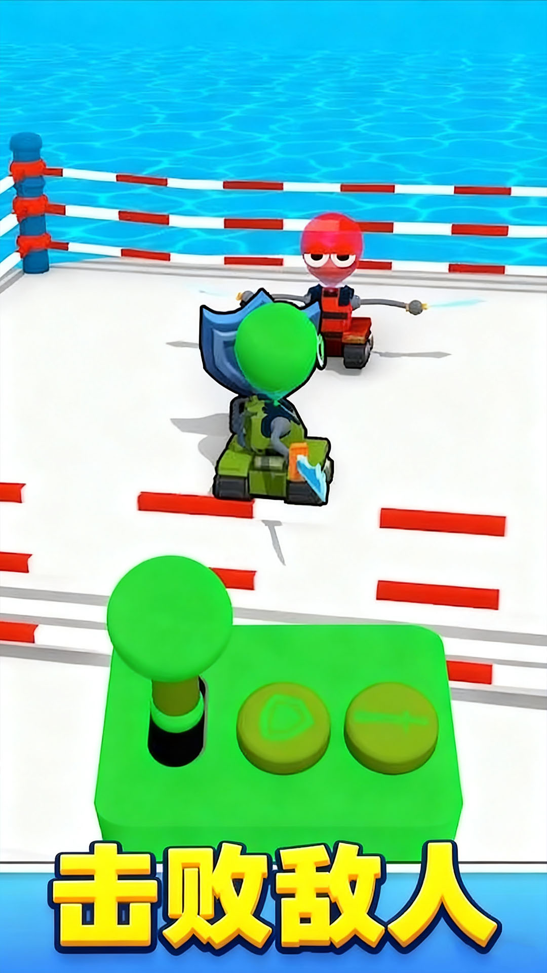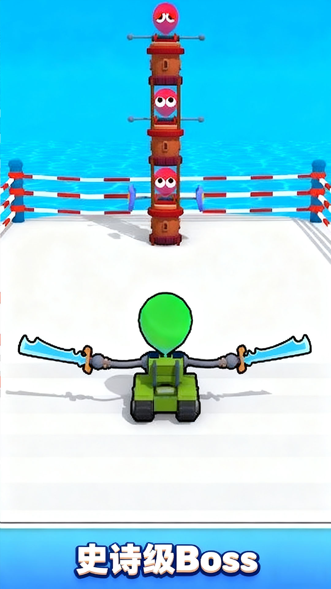 2、在关卡终点,需要操控你的气球战士与首领进行对战,摇杆移动,控制攻击防御来击败他。