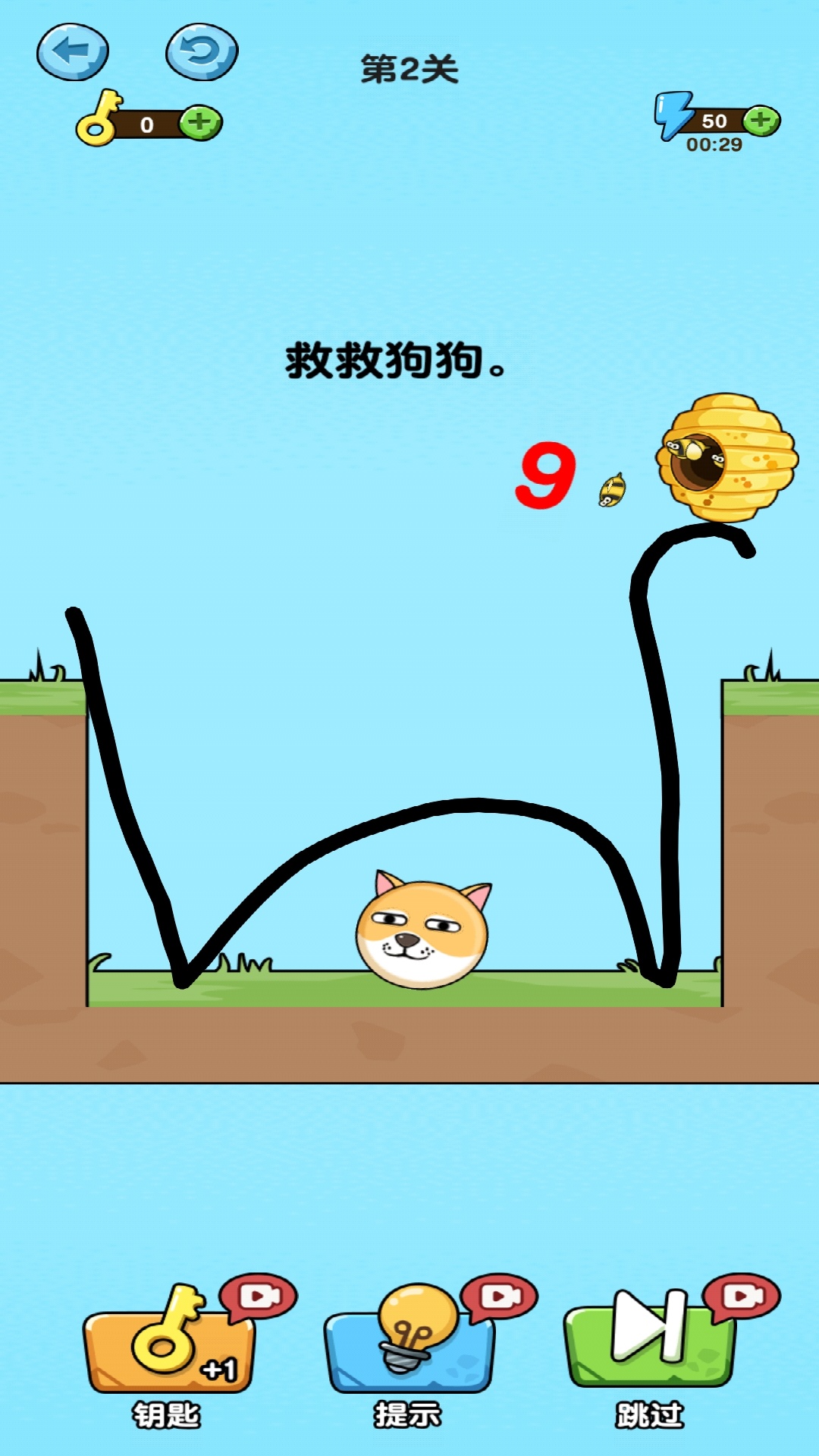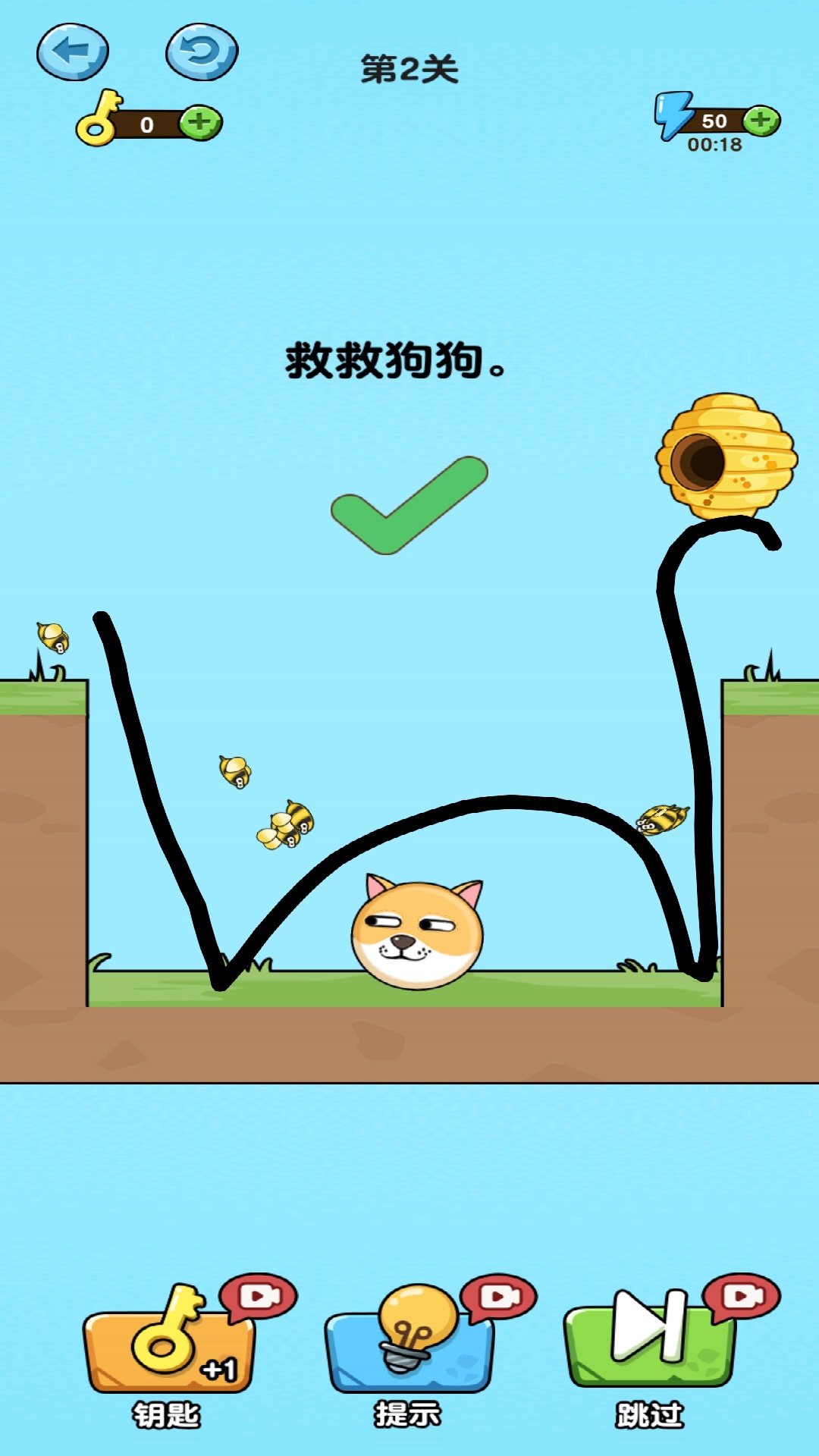 1、当玩家成功画线保护狗狗时,场景会给出即时反馈,如蜜蜂被屏障阻挡、狗狗安全逃生等,增强成就感;
